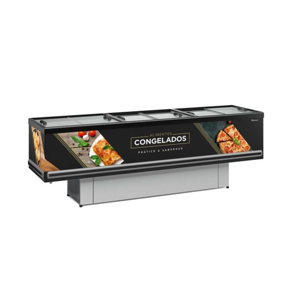 Ilha Expositor p/ Congelados e Resfriados GESV 290L Standard Preta Vidro Reto Deslizante Gelopar